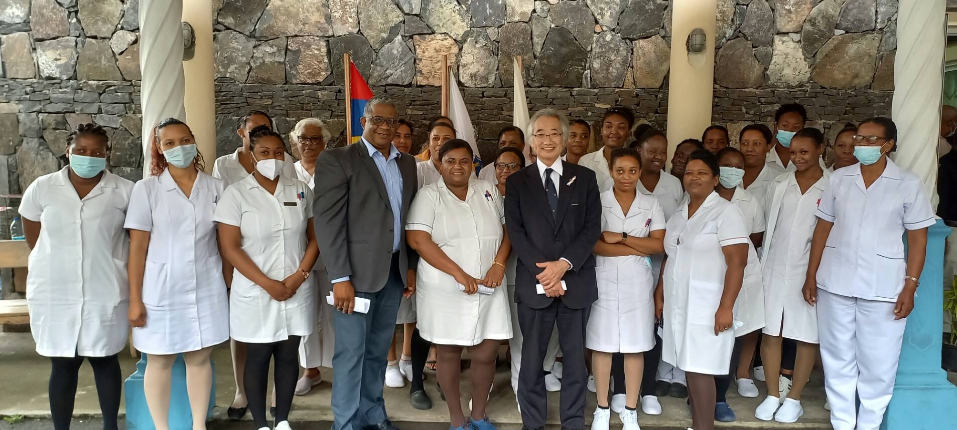 On 19 October 2022, the handing over ceremony of the Grant Assistance for Grassroots Human Security Projects (GGP) was held at the Queen Elizabeth Hospital in Rodrigues in the presence of Ambassador KAWAGUCHI, Mr. Johnson ROUSSETY, Chief Commissioner of Rodrigues Regional Assembly, Mr Jean Nicolas VOLBERT, the Commissioner for Health and Others, other members from the Embassy of Japan in Mauritius and from the Rodrigues Regional Assembly and many hospital staff.