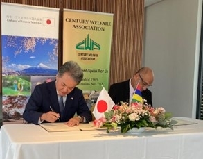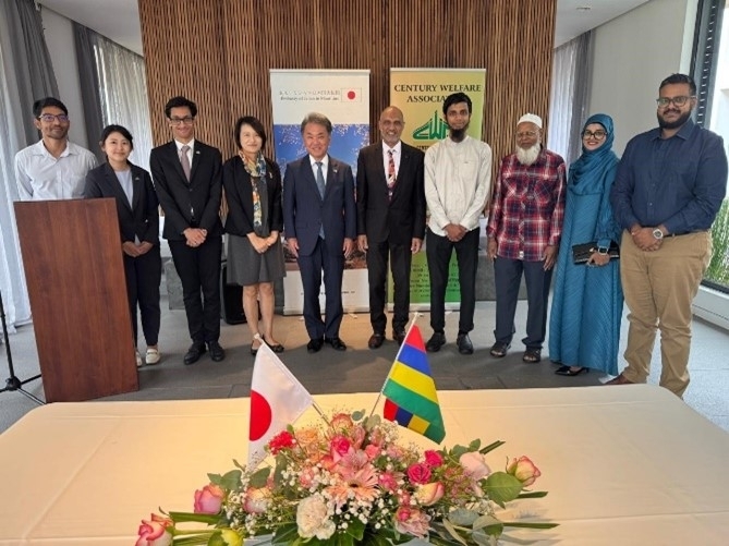 Mr. Kan Masahiro Ambassador of Embassy of Japan in Mauritius, Mr.Mohummad Shamad Ayoob Saab,President of Century Welfare Association