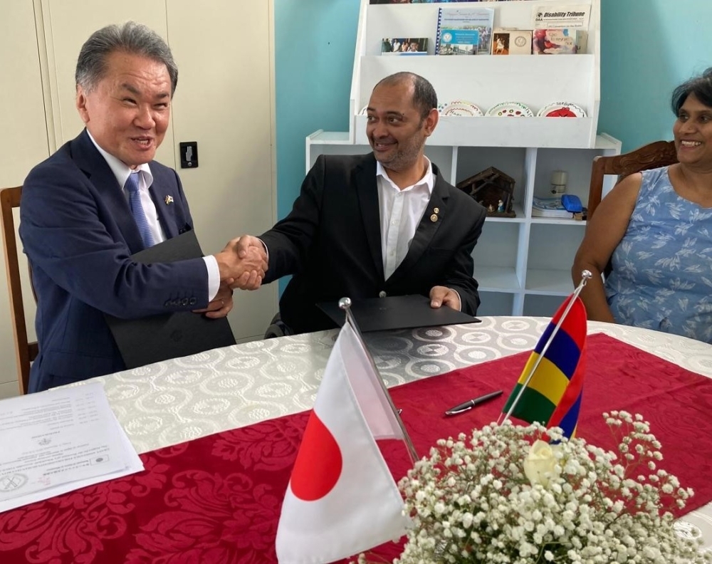 On 5th December 2025, the signing ceremony of the grant contract for the Grant Assistance for Grassroots Human Security Projects (GGP) was held at the G.R.N.O. The grant contract was signed by Mr. KAN Masahiro, Ambassador Extraordinary and Plenipotentiary and Mr. Jean-Francois Favory, President of Fraternité Mauricienne Des Malades et Handicapés .